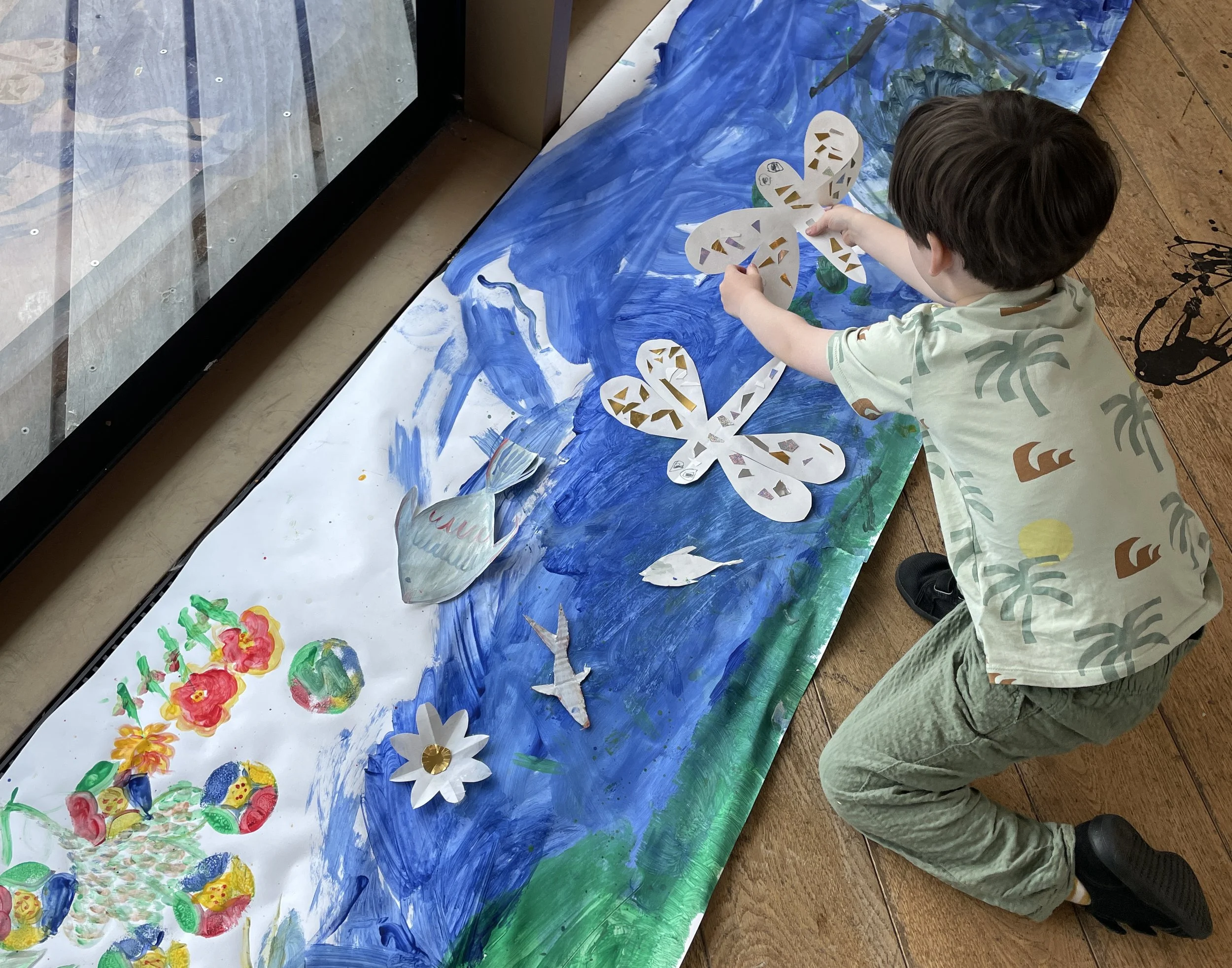 This is one of the big ways that I try encourage my son’s creativity. When he comes up with an idea, I always try to say yes if it’s possible. We accidentally broke a plate and he wanted to turn it into a mosaic, so we looked up how to do that. He brought some twigs home from nursery and wanted to turn them into a mini campfire for his toys, so I got out the glue gun and we did it. I love hearing my son’s ideas, and what he comes up with. Sometimes they just aren’t possible, but most of the time they are and I love working on a little project together. As an artist the process of coming up with an idea - making the thing - problem-solving and pushing through - ending up with a finished piece is such an vital process, and I try to emphasise that process with my son. So I say yes to his ideas, and when we hit a snag I model how to problem solve, think creatively and keep going. These are skills I use all the time in my work, and I want to show him that it’s really normal as an artist to have to do things a few different ways before you find something that works. It doesn’t mean you’ve failed or that you’re not good at making, it’s just a completely normal step in the process. At around this age kids start to have a concept of things being right or wrong, their drawing being good or not, things looking how they’re supposed to, and by emphasising the power of ideas and problem-solving, I hope I can mitigate my son’s perfectionism a little bit